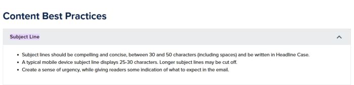 Example: The University of Arizona’s marketing team advises keeping subject lines concise (30–50 characters) and imbued with a sense of urgency, while still indicating the email’s content. Their guidelines echo what many have found: clear, direct subject lines (often including deadlines or event details) tend to lift open rates, because recipients immediately grasp the email’s value.