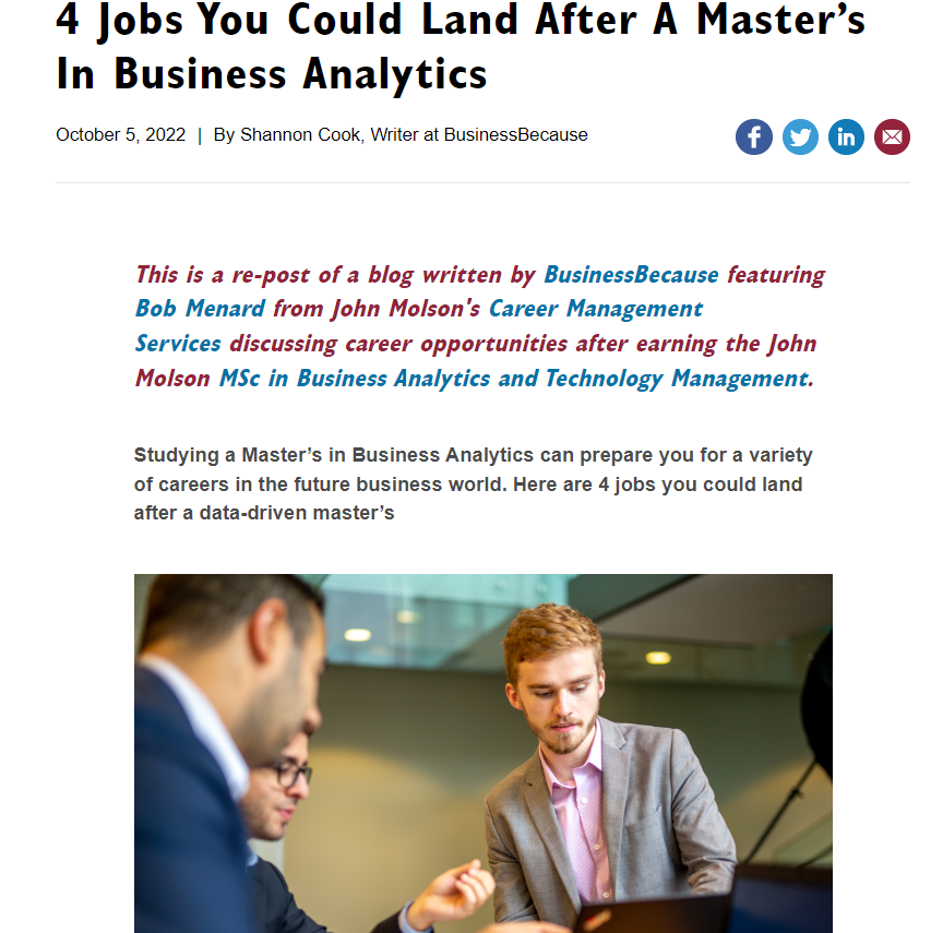 Example: Concordia University uses internal links in its blog post to redirect prospects to key pages that can act as turning points in their enrollment journey, all while providing them with interesting information. The content cleverly links to the program page, a research showcase, a form to connect with a recruiter and a page dedicated to program-specific info sessions.