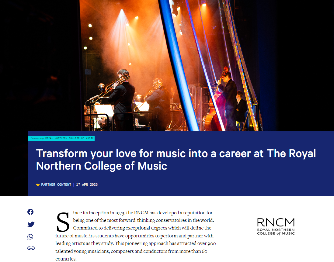 Example: The Royal Northern College of Music uses guest blogging to reach a new audience and strengthen its link-building strategy. The blog post shared below contains numerous links to the school website, ultimately boosting the school’s web traffic and credibility in the eyes of the search engine: