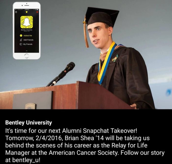 One of the most effective strategies employed by business schools is Snapchat alumni takeovers. Bentley University, for example, hosts monthly takeovers where alumni share “a day in the life” from their workplace, whether it’s at a Big Four accounting firm or a tech startup. These takeovers provide prospective students with a candid, behind-the-scenes look at life after graduation, helping them envision themselves in similar roles. This strategy not only promotes outcomes but also activates the alumni network, turning graduates into ambassadors for the school.